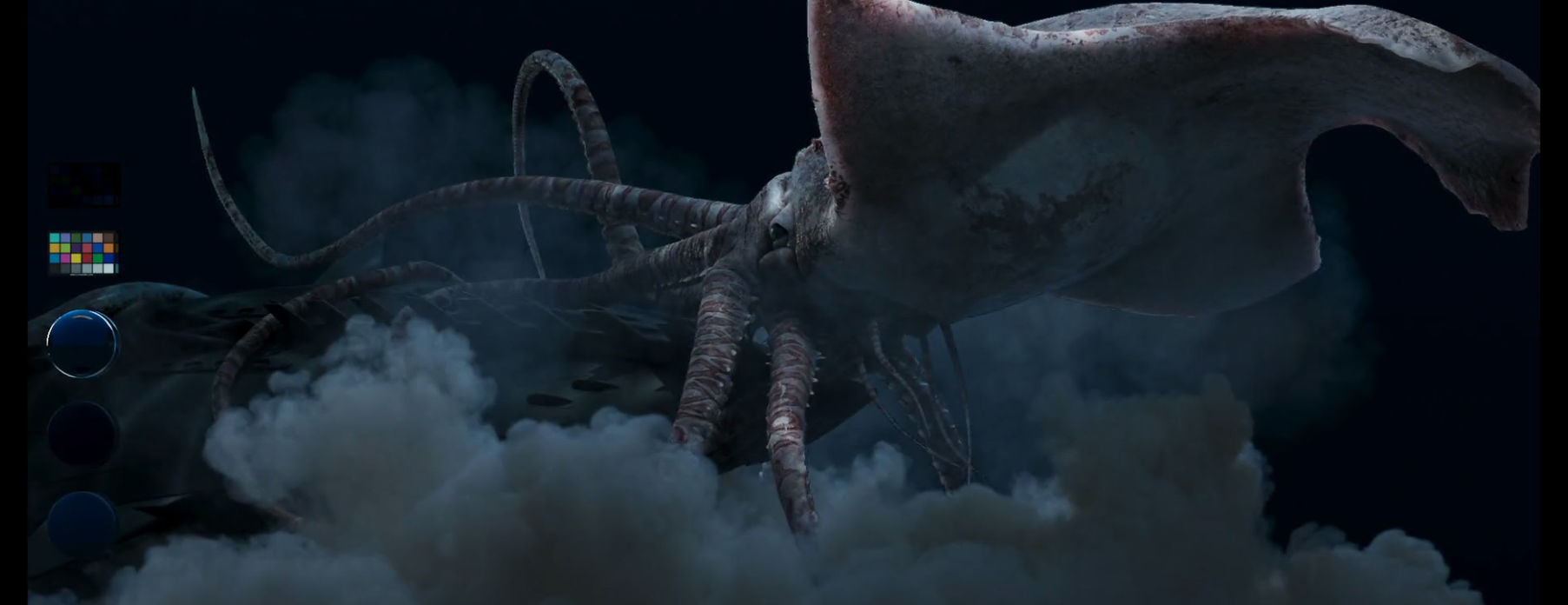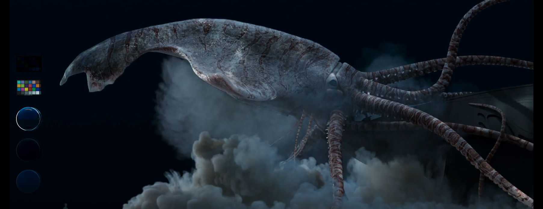 At Jellyfish Pictures, I was briefed with the task of creating the materials for some of the hero creatures, notably a giant squid fighting an epic battle with Captain Nemo and the Nautilus itself, as well as a pod of sperm whales and various digi-doubles.
